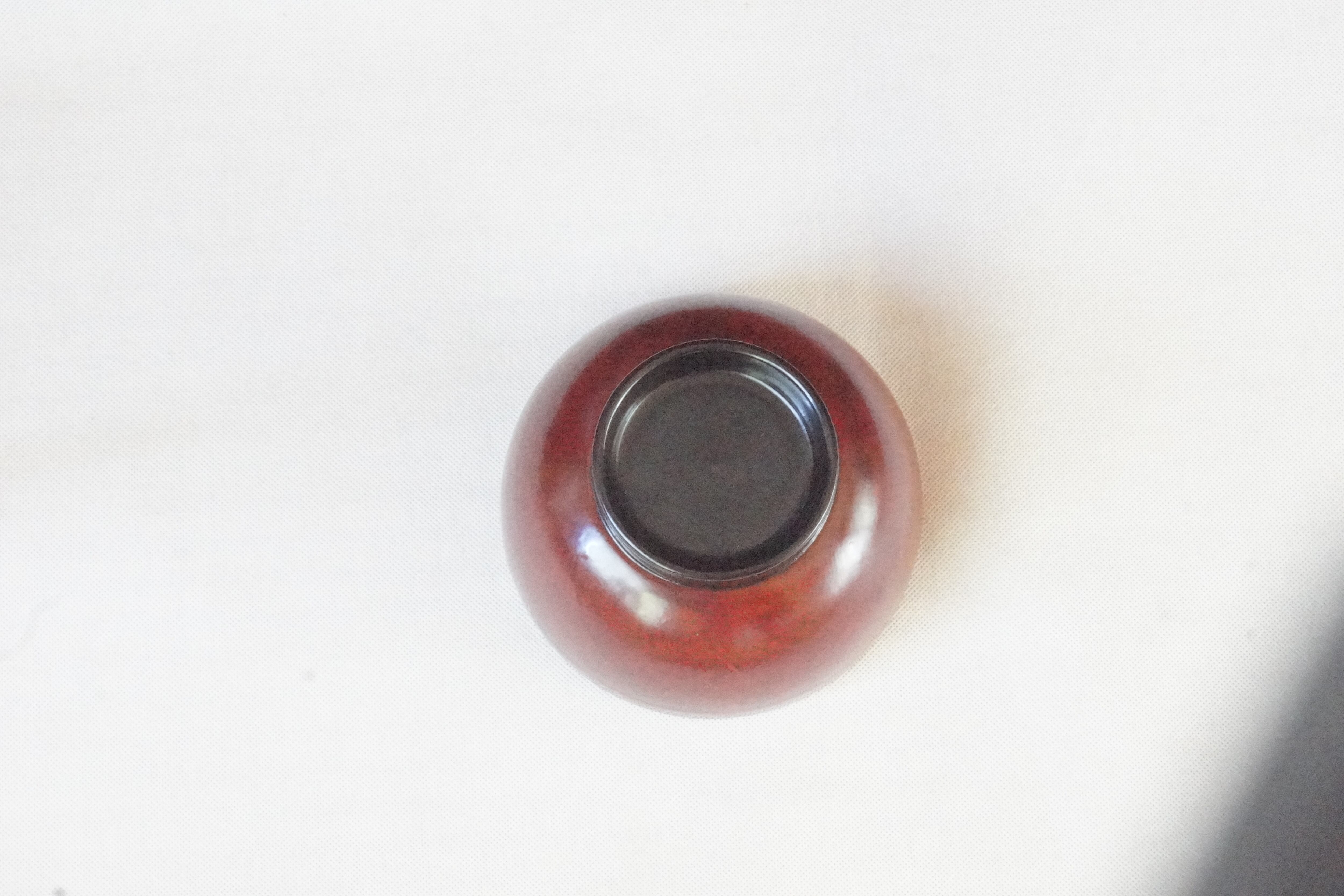外側は朱色のハケ目を残したちょっと変わったデザインです。敢えて艶にムラがあります。