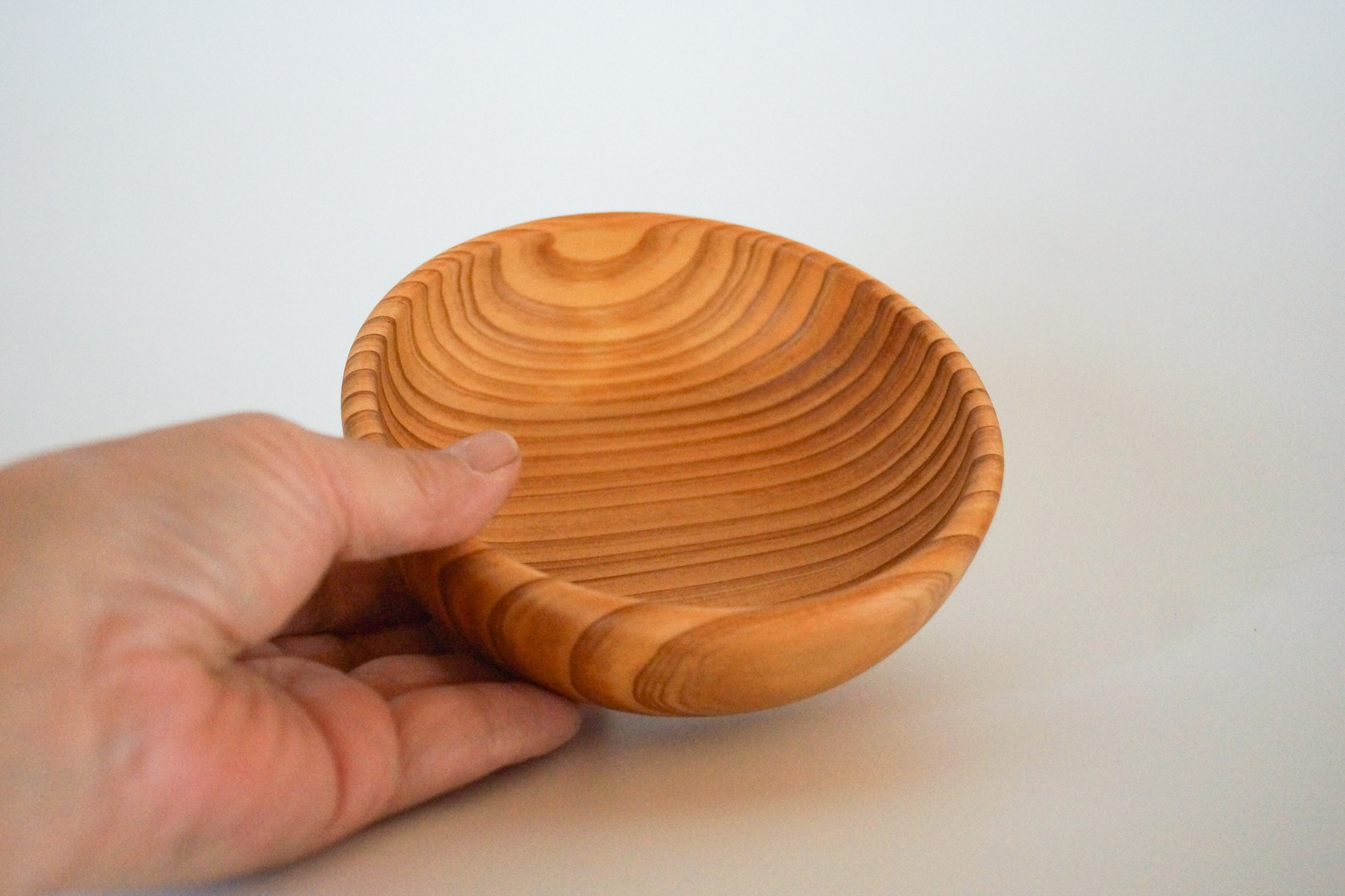 スギの器は他の木の器に比べて軽く、水に強いので痛みにくく、とても使いやすいです。