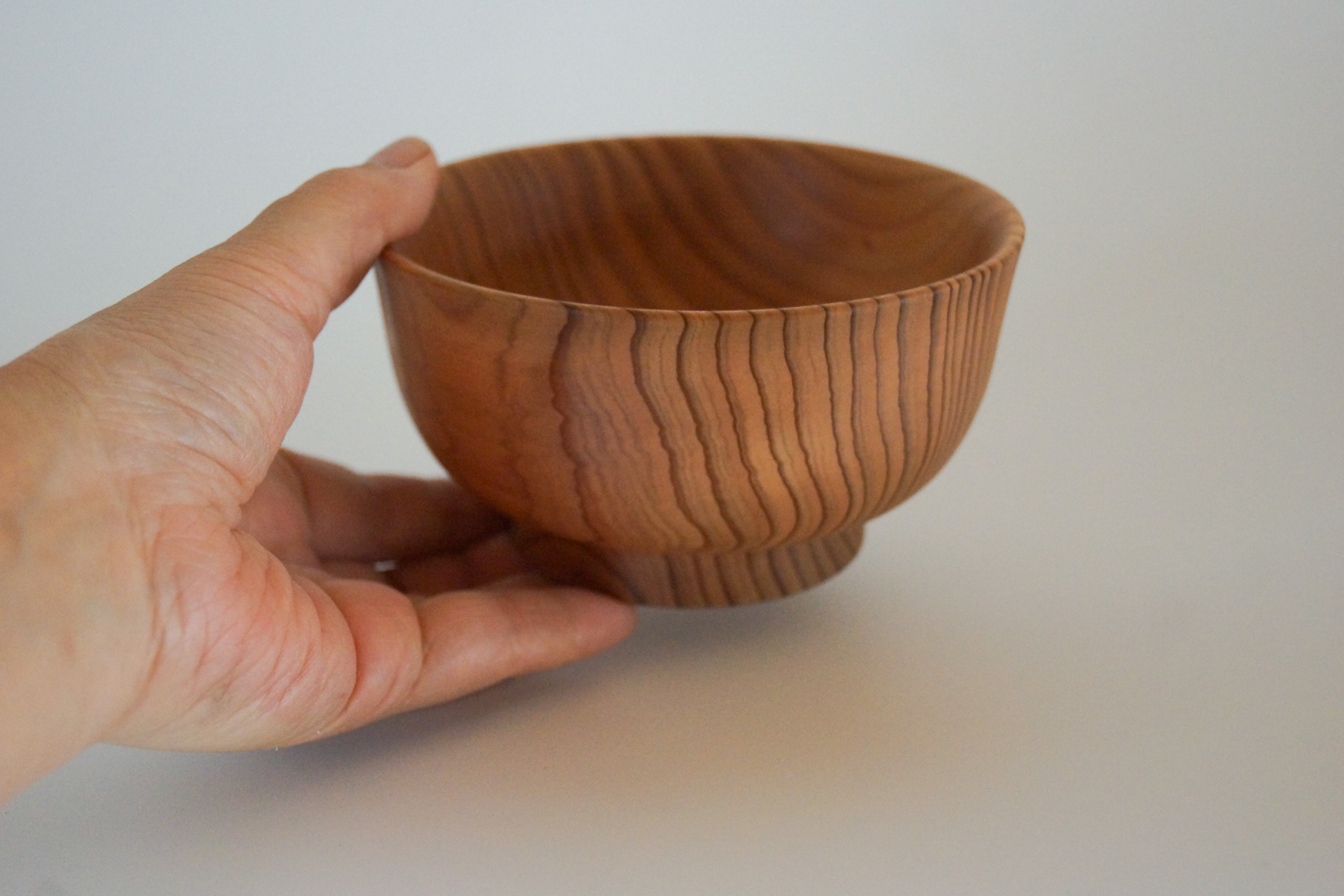 スギの器は他の木の器に比べて軽く、水に強いので痛みにくく、とても使いやすいです。