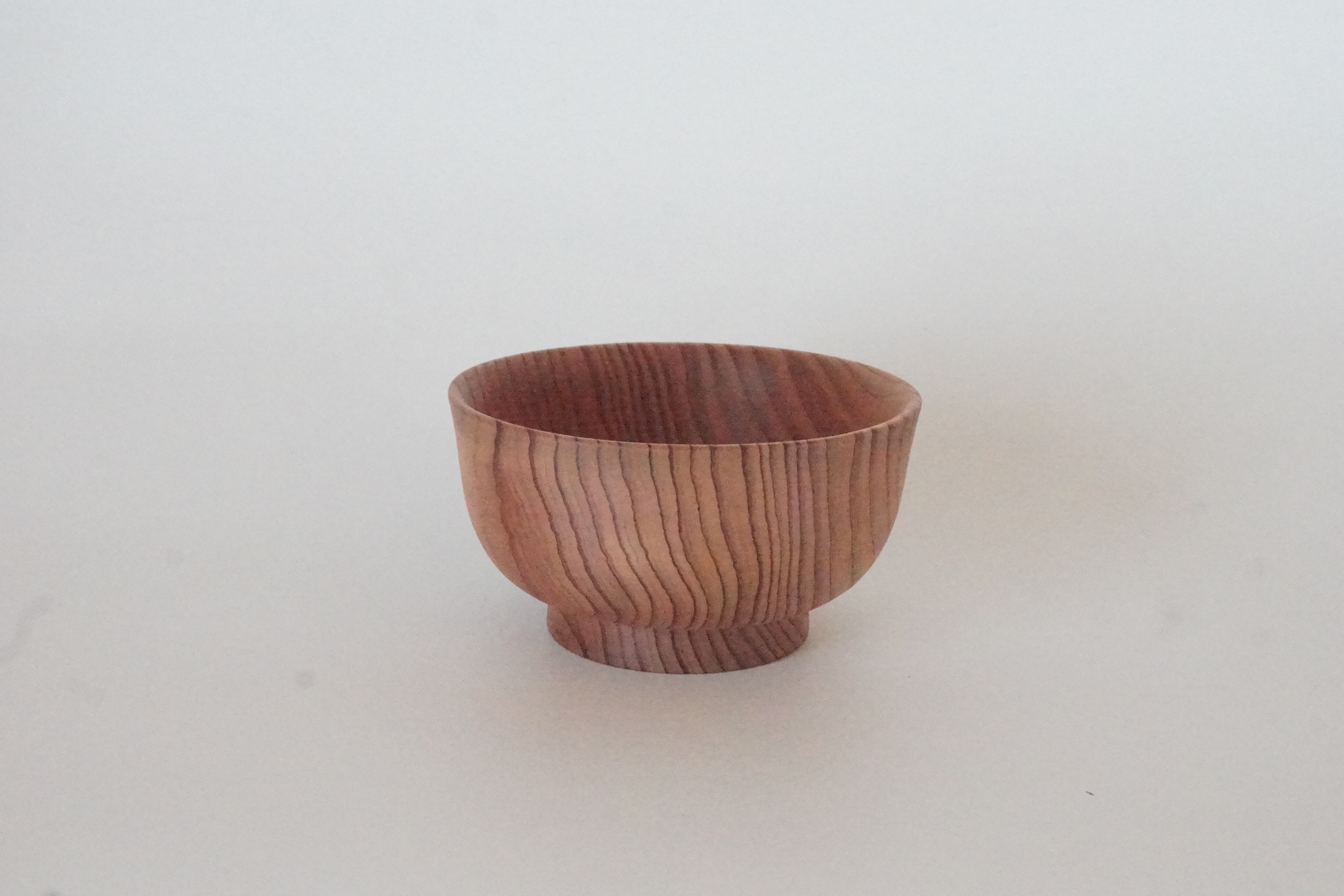 杉材の自然な木目を活かすセラミック塗料で仕上げています。ナチュラルに見えますが、椀として温かいものをいれても大丈夫です。また醤油や油などは染みません。